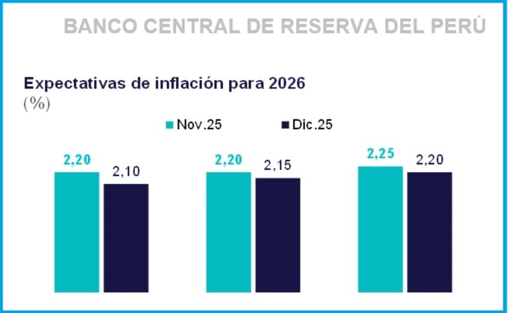 «Con relación a este 2026, los analistas económicos redujeron su proyección de inflación de 2.10% a 2% entre diciembre y enero, y el sistema financiero la redujo de 2.15% a 2.05% entre ambos meses. Las entidades no financieras esperan que esta variable se mantenga en 2.20%», agregó.