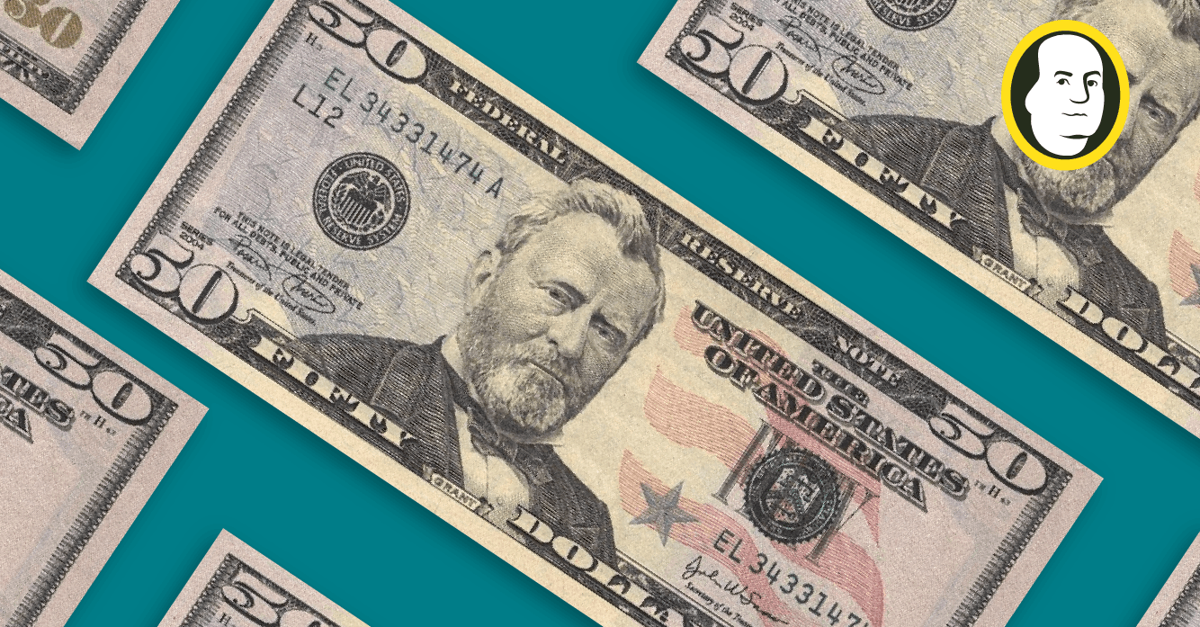El billete de 50 dólares es la segunda denominación de billetes de dólar estadounidenses más alta solo superado por el billete de 100 dólares. Se le reconoce rápidamente por la imagen del presidente estadounidense Ulysses S. Grant.