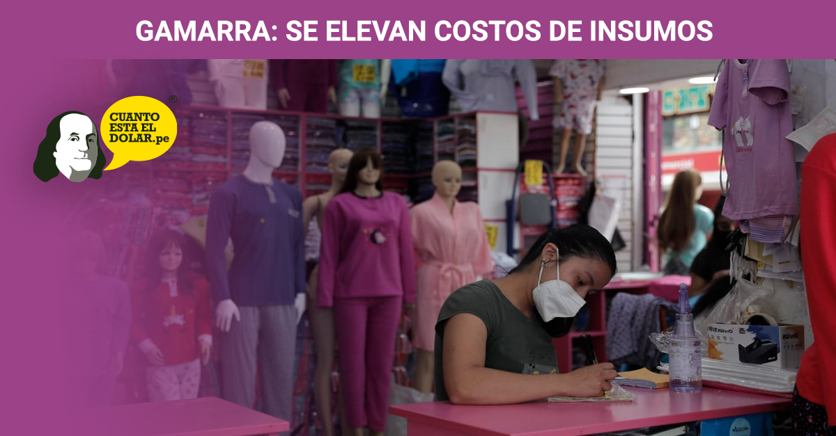 La Asociación Empresarial Gamarra Perú indicó que los empresarios del emporio comercial se encuentran afectados por el alza del dólar, que sigue operando por encima de los S/ 4 en el mercado peruano. Razón por la que, el precio de los insumos importados se han incrementado, por lo que los empresarios se han visto la necesidad de asumir los costos para que no impacte a usuarios.