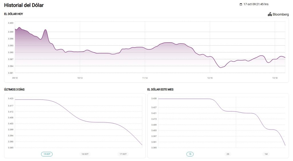 El precio del dólar inició bajando frente al sol al inicio de la sesión cambiaria en un contexto de volatilidad de la moneda en el mercado regional. La cotización de venta del dólar se sitúa en 3.404 soles en el mercado interbancario (entre bancos), nivel inferior al de la jornada previa de 3.406 soles.