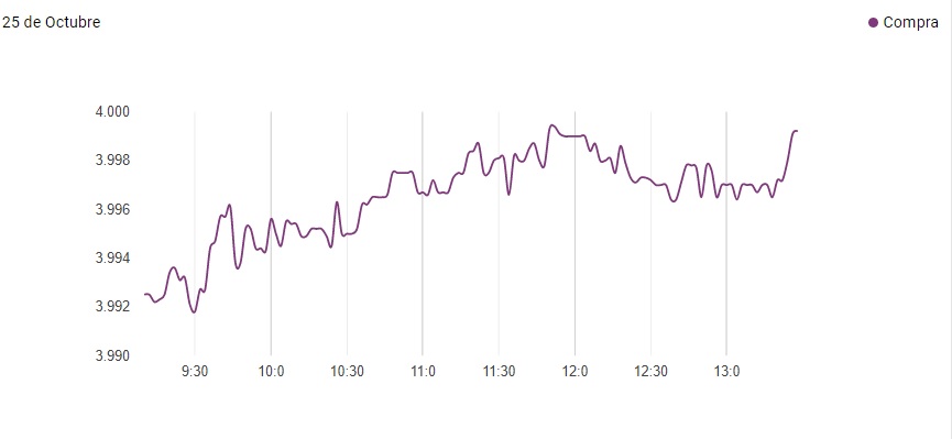El tipo de cambio del precio del dólar el martes 25 de octubre es de S/ 3.979 en la compra y en S/ 3.984 la venta, según el reporte de la SUNAT.
