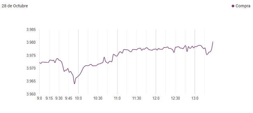 Por su parte, Bloomberg indicó a través de su portal financiero que la divisa fluctúa ligeramente a la baja con 3.9804, un 0.0059 % mayor durante la apertura de la jornada interbancaria.